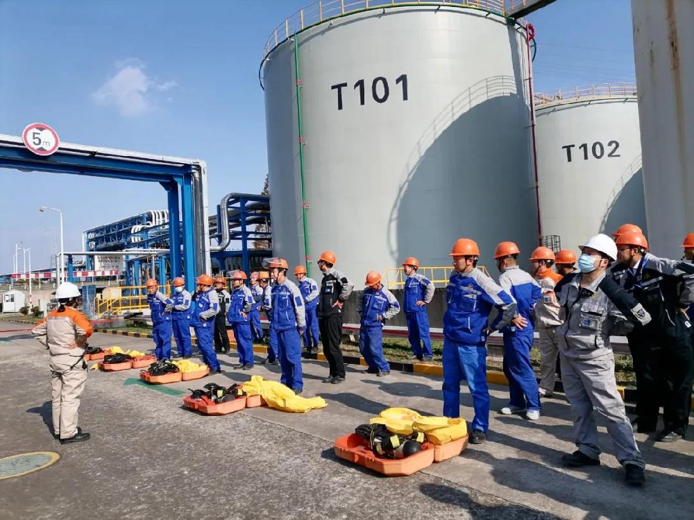 筑安全防線,為生命護(hù)航!_江陰華西化工碼頭有限公司開(kāi)展了防化服及正壓式空氣呼吸器穿戴技能競(jìng)賽。為進(jìn)一步提升全體員工的安全防范意識(shí)和突發(fā)事件應(yīng)急處置實(shí)戰(zhàn)技能,增強(qiáng)班組的凝聚力和集體榮譽(yù)感,確保各項(xiàng)工作安全、平穩(wěn)、有序開(kāi)展,11月30日下午,江陰華西化工碼頭有限公司開(kāi)展了防化服及正壓式空氣呼吸器穿戴技···2021-12-02
